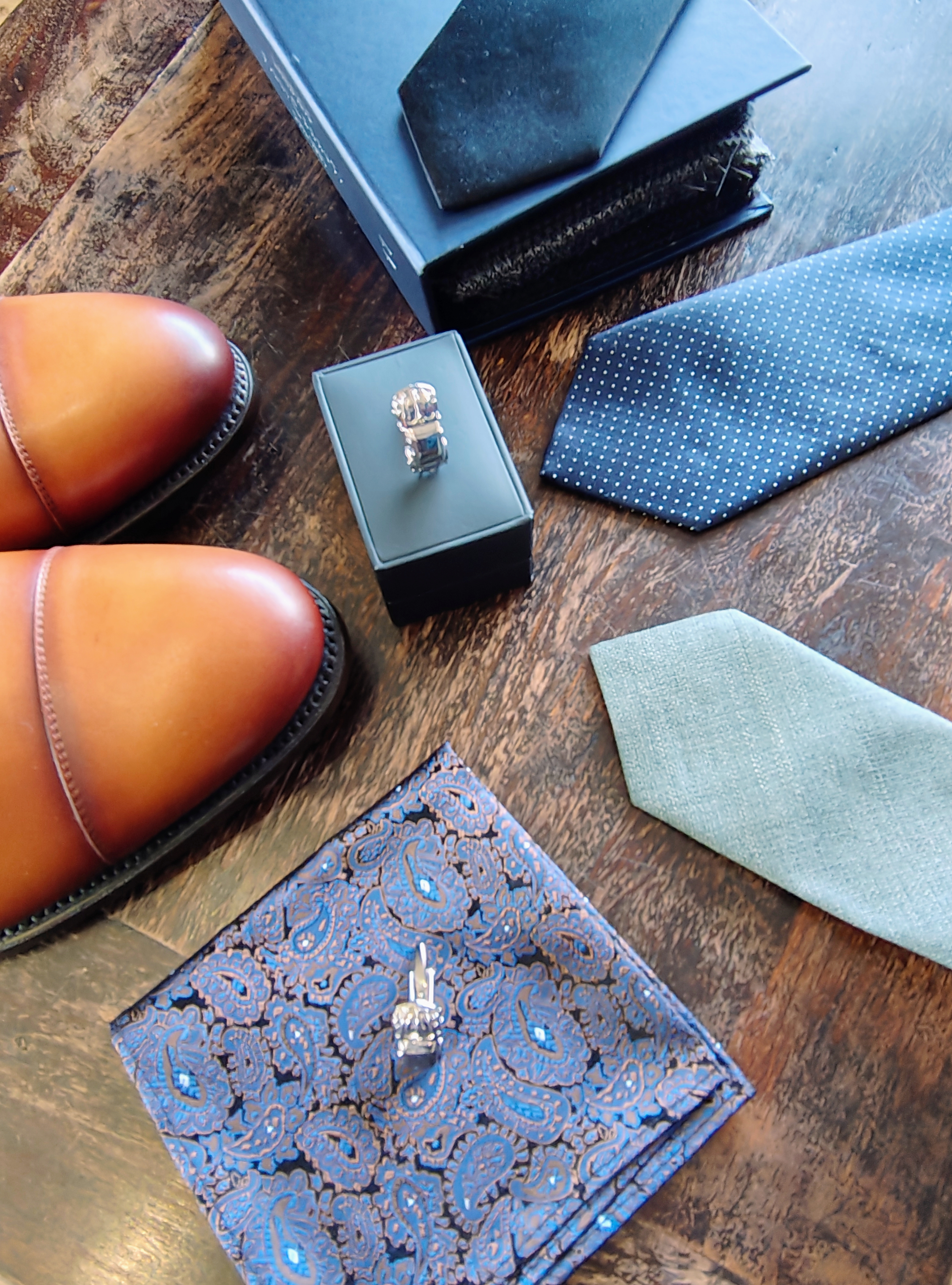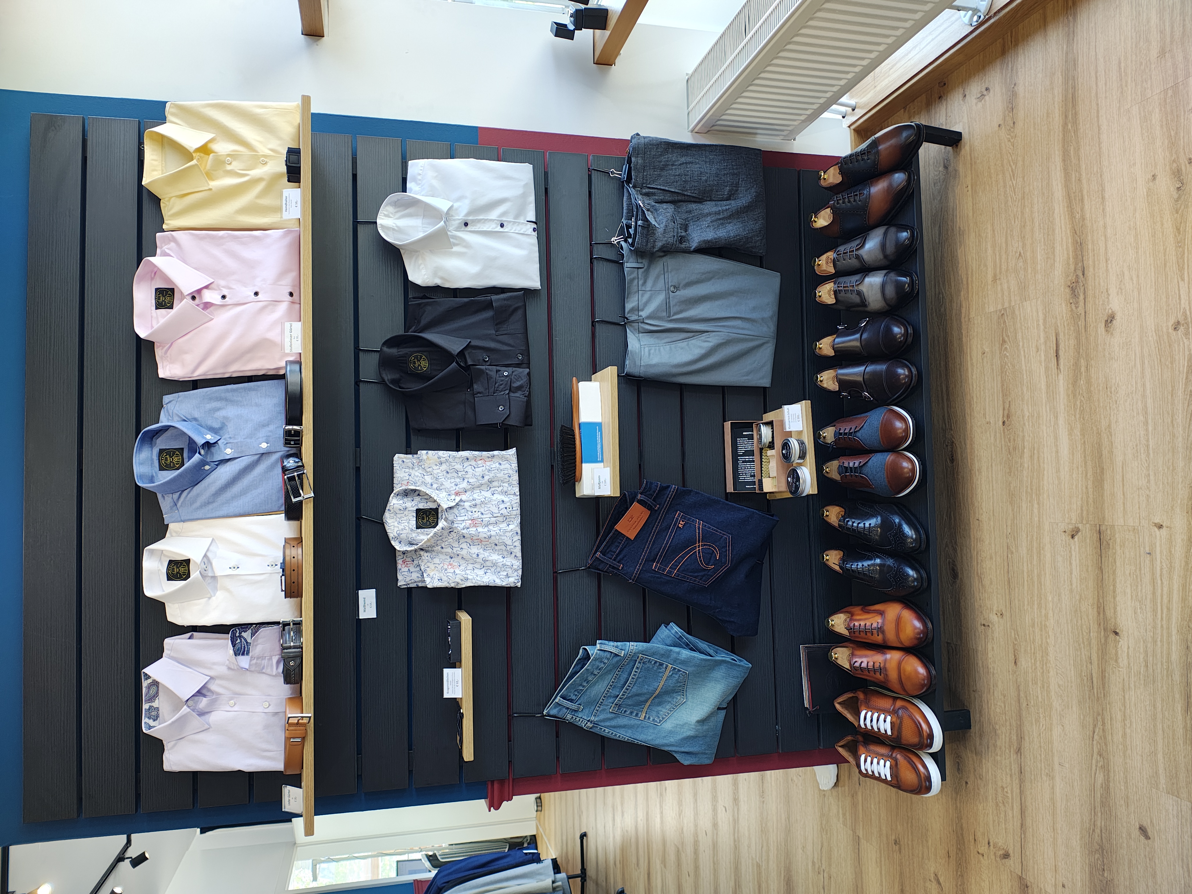 Maßanzüge, Maßhemden, Änderungen aller Art, Textilreinigung, Schuhe, Accessoires (Krawatten, Fliegen, Einstecktücher, etc.)